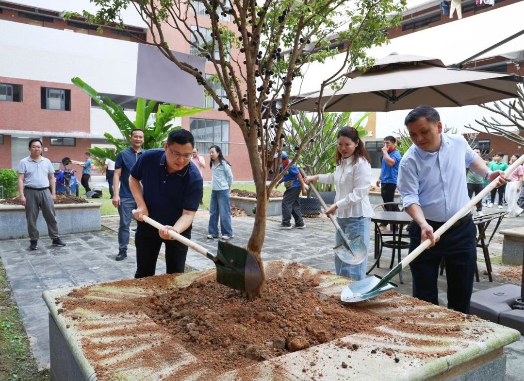 选择在学生社区、教师公寓、教学楼和体育馆旁种下嘉宝果树,也是有着特别寓意。植于学生社区,是希望同学们像嘉宝果树一样,在大学这片沃土上向下扎根、向上生长,在“一站式”学生社区这个育人场域中,接受思想引领、学业支持、生活关怀的全方位浸润。教学楼与体育馆旁的新绿,则寄望学子们在课堂学习与体育锻炼中同步成长,既有扎实学识,又有强健体魄,实现德智体美劳全面发展。教师公寓旁那一株株嘉宝果树,则是对辛勤耕耘的教职工的致敬——嘉宝果树扎根大地、默默孕育果实,正如广大教师潜心立德树人,以“桃李满天下”为最高荣耀,在育人一线默默坚守、无私奉献。