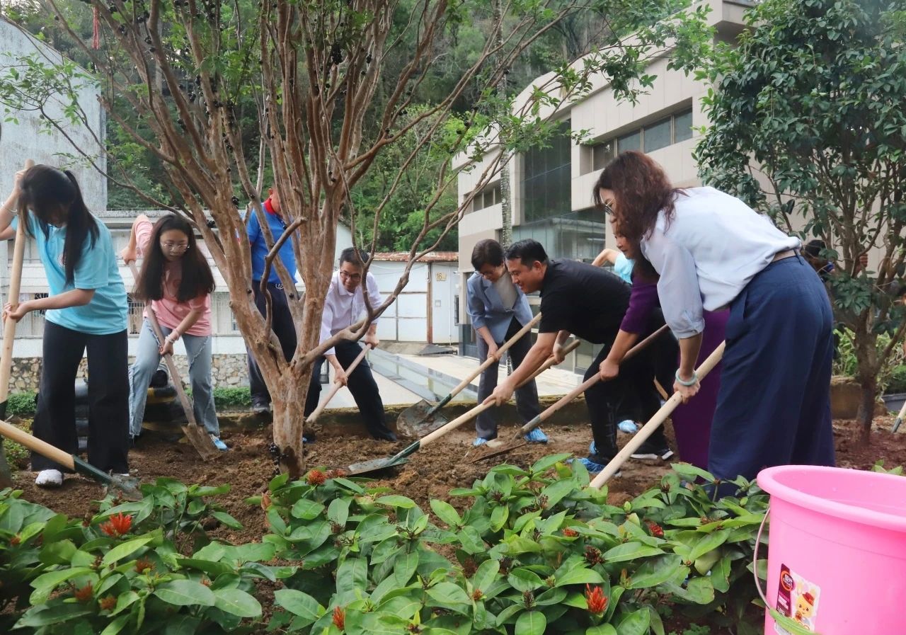 中山校区植树地点选在各学院一站式学生社区和教师公寓旁,白云山校区则位于教学楼和体育馆旁。植树现场,幸小涛和刘文清身体力行,与师生们一同挥锹铲土、扶苗填坑、提水浇灌。大家分工协作、默契配合,现场气氛热烈而温馨,一株株新苗在春风中昂然挺立。